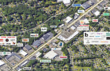 Milford Square sits between two traffic light intersections, and across from a Whole Foods anchored shopping center