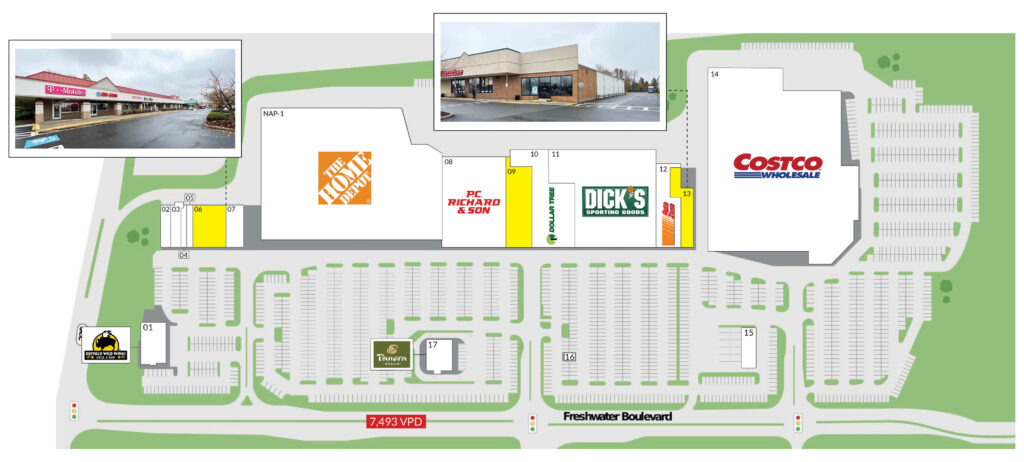 Traffic Counts: Freshwater Blvd: 13,695 VPD; Elm St: 27,986 VPD
