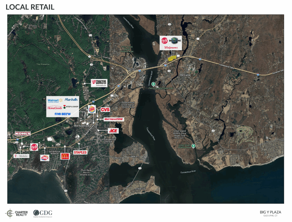 • 102,500± SF grocery anchored shopping center located on the heavily traveled Route 1 in Old Lyme, CT.