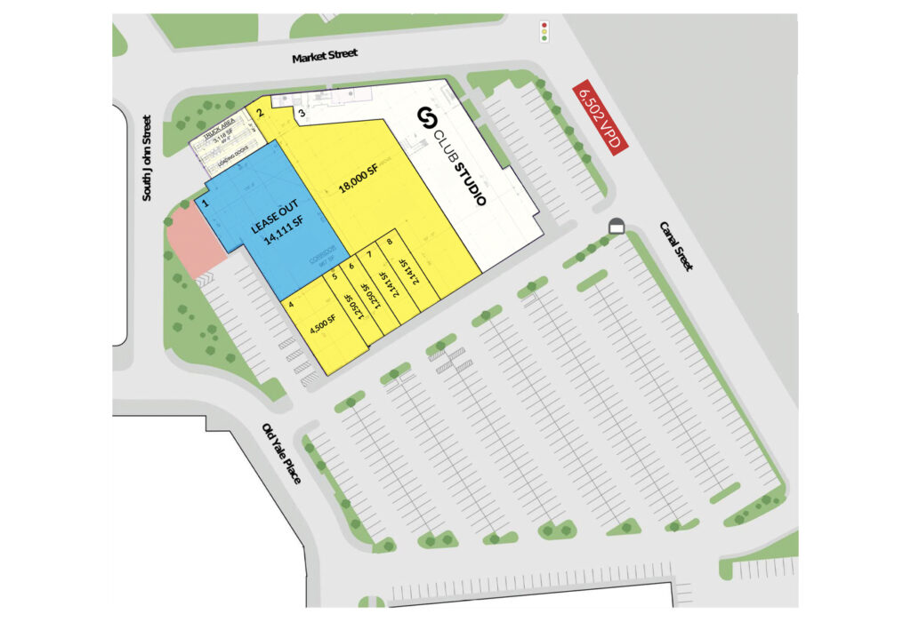 450 ft of frontage along Canal Street, & 365 ft along Market Street