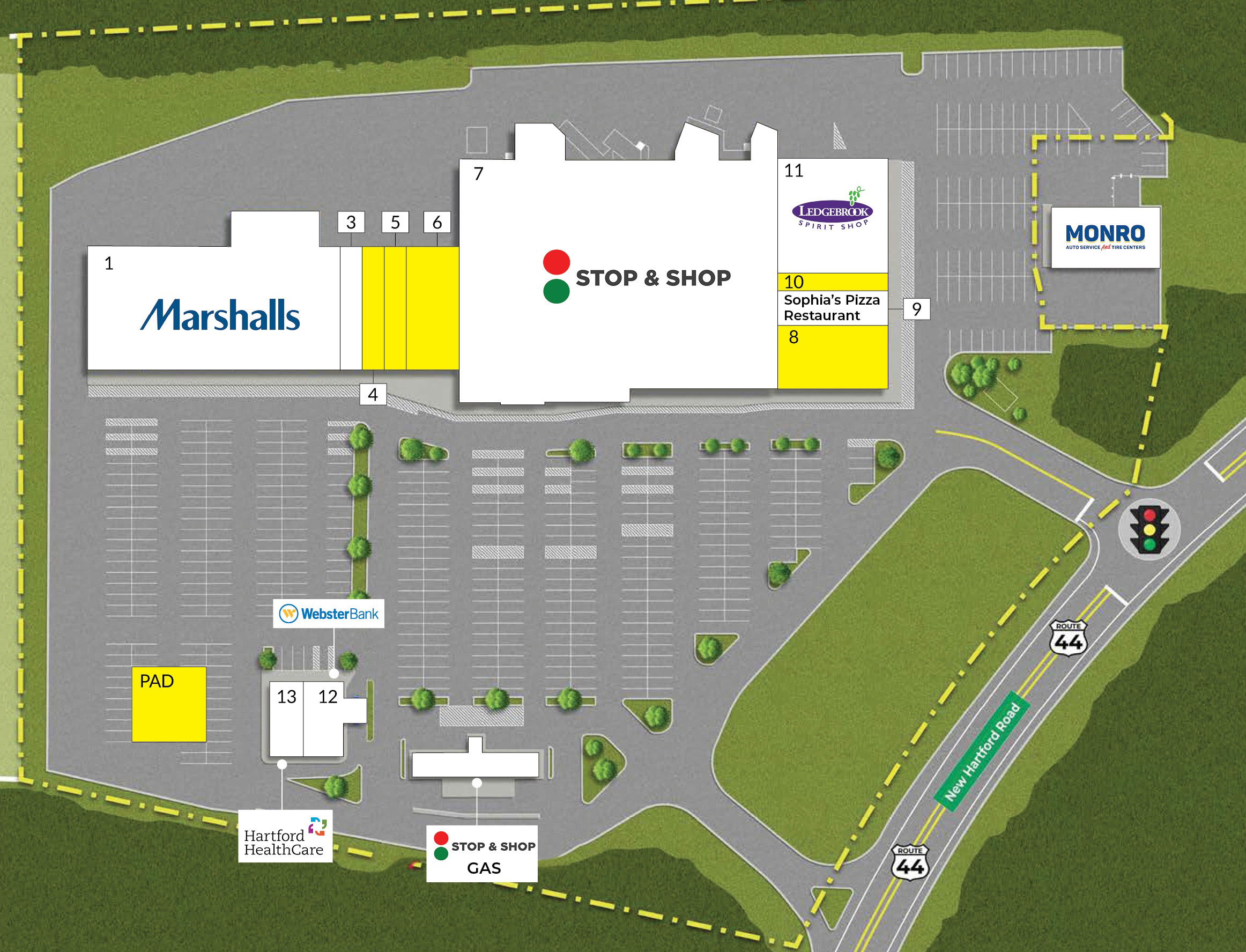 Diverse tenant mix, including national and local retailers – appealing neighboring tenants on Route 44